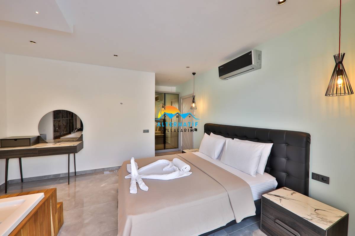 1. Yatak Odası : 1 adet çift kişilik yatak, klima, komodin, makyaj masası, elbise dolabı, jakuzi ve banyo tuvalet bulunmaktadır.