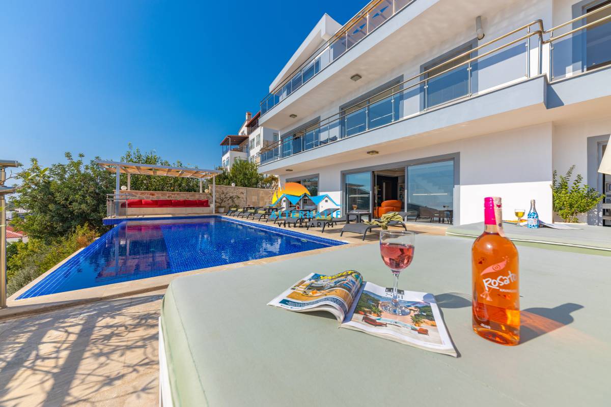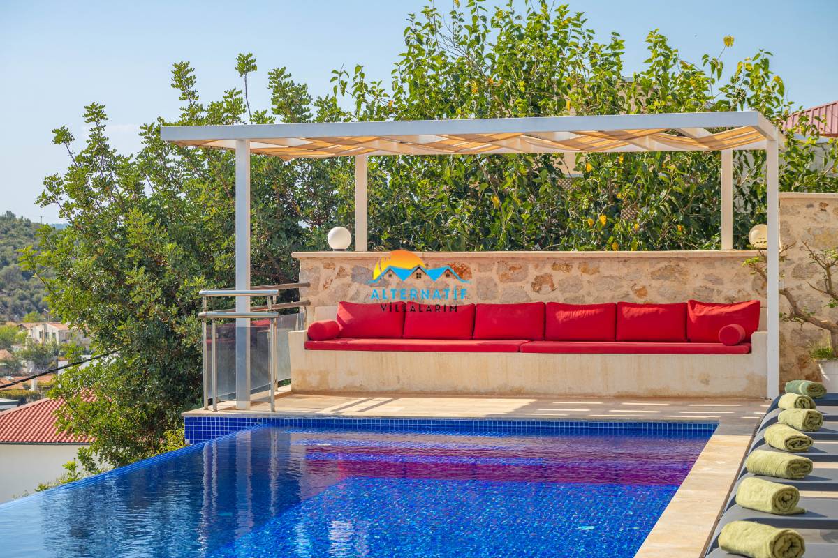 Dünyaca ünlü turizm destinasyonlarından olan Kalkan'ın gözde tatil mevkii Akbel'de yer alan Villa Kaputaş, konumundan dolayı eşsiz bir deniz manzarasına sahiptir. Yeşilin en güzel tonları ile mavinin huzur veren kesişim noktasında yer alan villamız, hem size hem de ailenize ya da arkadaşlarınıza konforlu bir tatilin kapılarını aralayacak. Son derece lüks ve modern eşyalar ile dizayn edilmiş yazlık villa toplamda 12 kişilik konaklama kapasitesine sahiptir. Villa içerisinde 6 adet suit yatak odası ve 6 adet de banyo yer almaktadır. Her bir odası son derece lüks ve konforlu eşyaları ile döşenmiş olup, her bir odada rahatlığınız için klima mevcuttur.Rüya gibi bir tatil geçirmek için sadece villanıza karar verin ve bizimle iletişime geçin yeter.