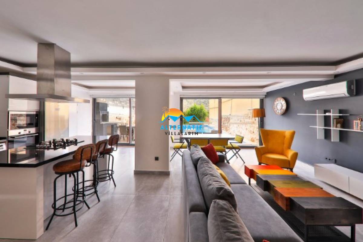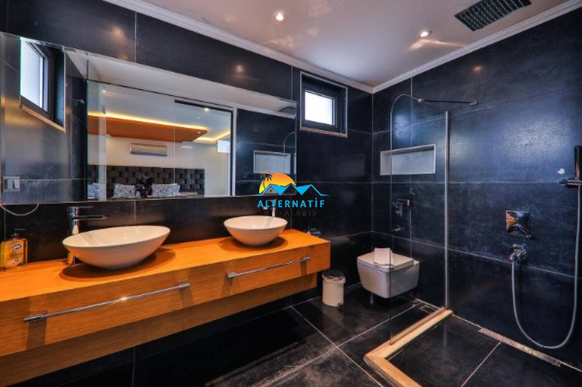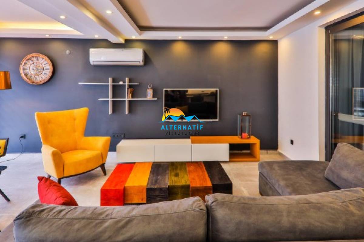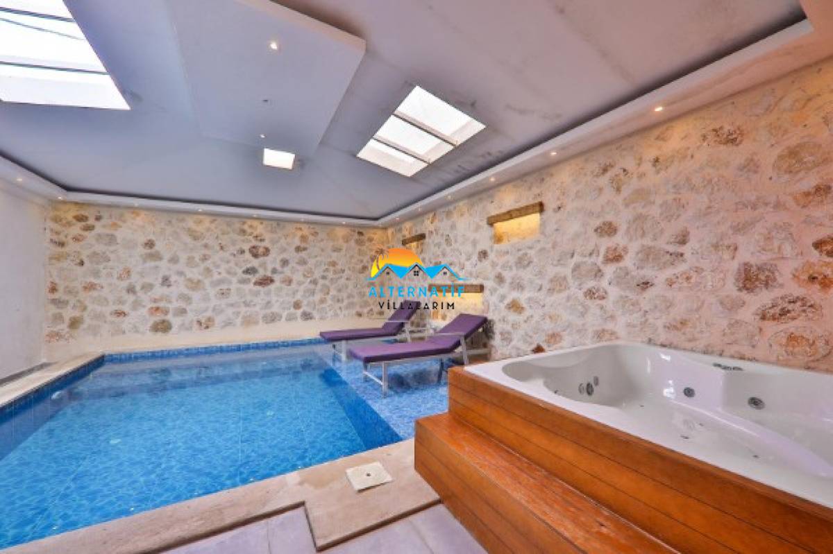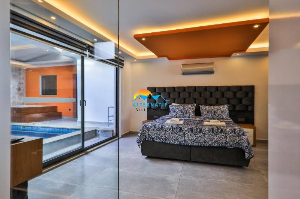Villamızın içerisinde iki adet yatak odası ve iki adet banyo bulunmaktadır. Birinci yatak odasında çift kişilik yatak, klima, banyo, jakuzi, ısıtmalı iç havuz bulunmaktadır. İkinci yatak odasında ise iki adet tek kişilik yatak, klima ve ebeveyn banyosu bulunmaktadır. Ortak alanda ise salon, mutfak, klima ve televizyon bulunmaktadır. Bahçe Bölümünde masa tenisi bulunmaktadır.